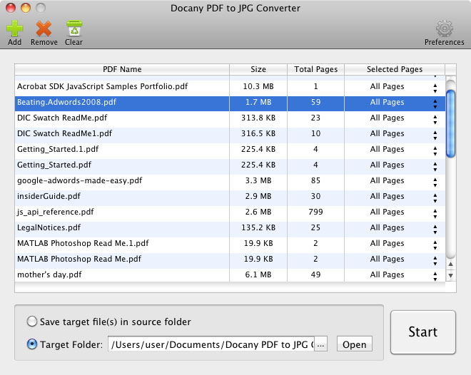 Docany PDF to JPG Converter for Mac is an easy-to-use program to convert PDF to image files, such as JPG, BMP, PNG, TIFF... With a few mouse clicks hundreds of PDF files will be converted to image files automatically. So you can easily edit, re-use, re-organize, present, and share your PDF files. Additionally, it doesn't require Adobe Acrobat or any other PDF plugins to be installed.