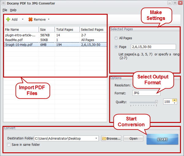 Docany PDF to JPG Converter is an efficient and convenient program to convert PDF to JPG or in other format images, such as BMP, PNG, TIFF... With a few mouse clicks hundreds of PDF files will be converted to image files automatically. So you can easily edit, re-use, re-organize, present, and share your PDF files. Additionally, it doesn't require Adobe Acrobat or any other PDF plugins to be installed.